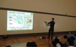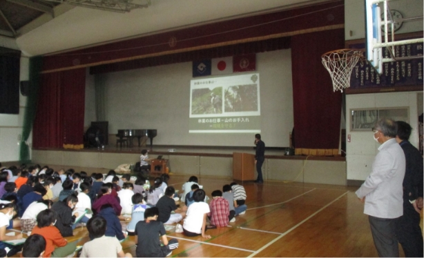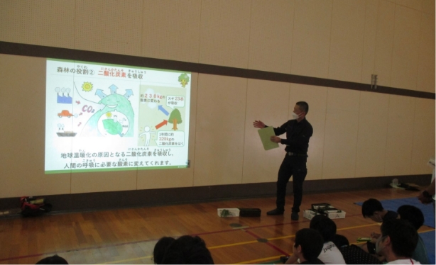 次に、森林の役割など映像を見ながら森林資源の働きを学びます。